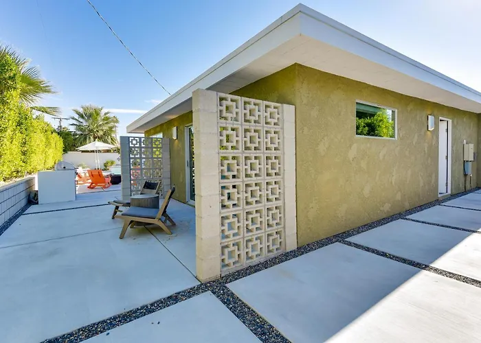 Deze 4-slaapkamer 2 Mi To Downtown Luxe Palm Springs Home! ligt binnen 25 minuten lopen van de O'Donald Golf Course en heeft een privézwembad, een bubbelbad om in te ontspannen. Dit vakantiehuis heeft een patio en ligt binnen het bereik van het Ruth Hardy Park.